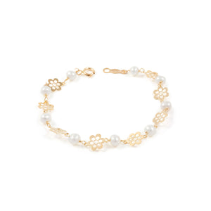 Pulsera Niña Oro 9 Quilates (375/1000) Flor Perla Redonda 4 mm