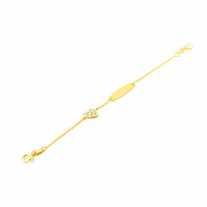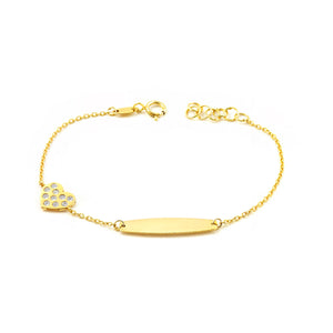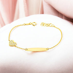 Pulsera Niña Oro Amarillo 9K Personalizada Esclava Corazón Circonita Brillo 14 cm