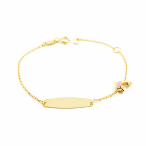 Pulsera Niña Oro Amarillo 9K Personalizada Esclava Delfín Rosa Brillo 14 cm