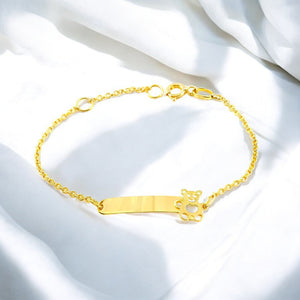 Pulsera Niña Oro Amarillo 9K Personalizada Esclava Oso Brillo 14 cm