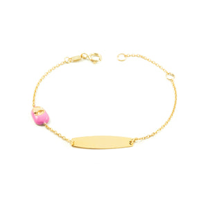 Pulsera Niña Oro Amarillo 9K Personalizada Esclava Zapato Rosa Brillo 14 cm