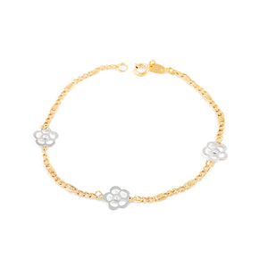 Pulsera Niña Oro Bicolor 9 Quilates (375/1000) Flores Circonita