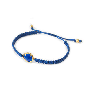 Pulsera Plata de Ley Dorado Macramé Azul Brillo