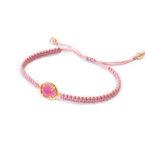 Pulsera Plata de Ley Dorado Macramé Rosa Brillo