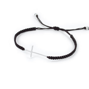 Pulsera macrame marron con cruz en plata